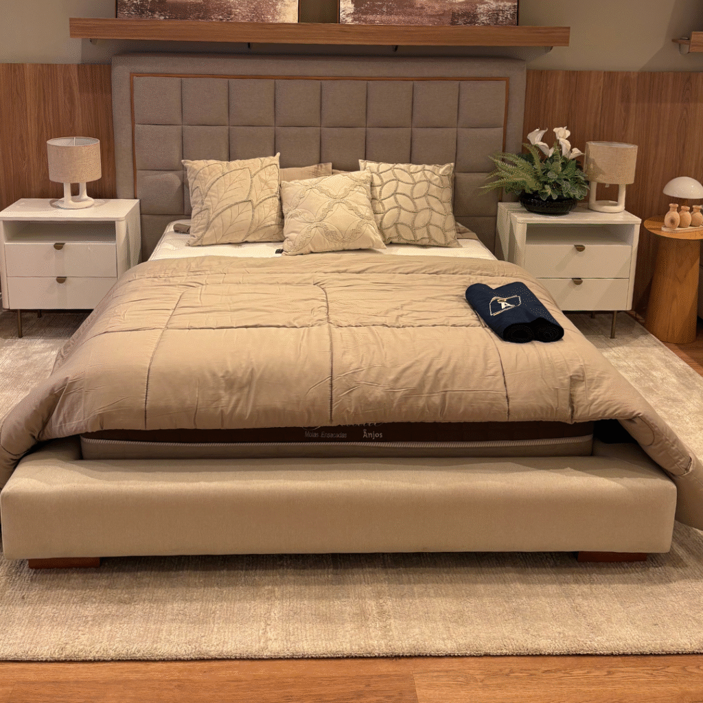 Elegância e conforto são os pilares do Di Lorenzo. Com detalhes em couro nobre e tecido Hugstar, ele libera um toque de frescor e relaxamento enquanto você dorme. Ideal para quem busca alto padrão em conforto, resistência e sofisticação em cada detalhe.
